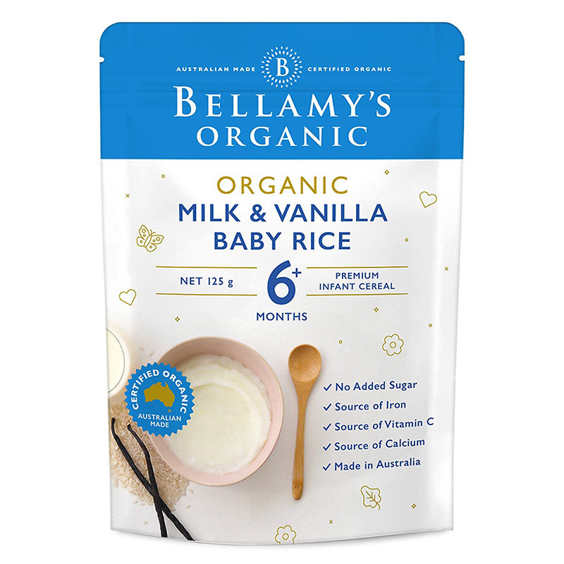 Bột dinh dưỡng hữu cơ Bellamy's Organic gạo, sữa, vani 125g (6M+) có cấu tạo mịn màng với một lượng nhỏ vanilla chiết xuất. Sản phẩm được chế biến đơn giản, chỉ cần pha với nước hoặc sữa công thức của bé. Có thể kết hợp với trái cây và rau củ xay nhuyễn để tạo ra nhiều bữa ăn khác nhau cho bé thưởng thức.
