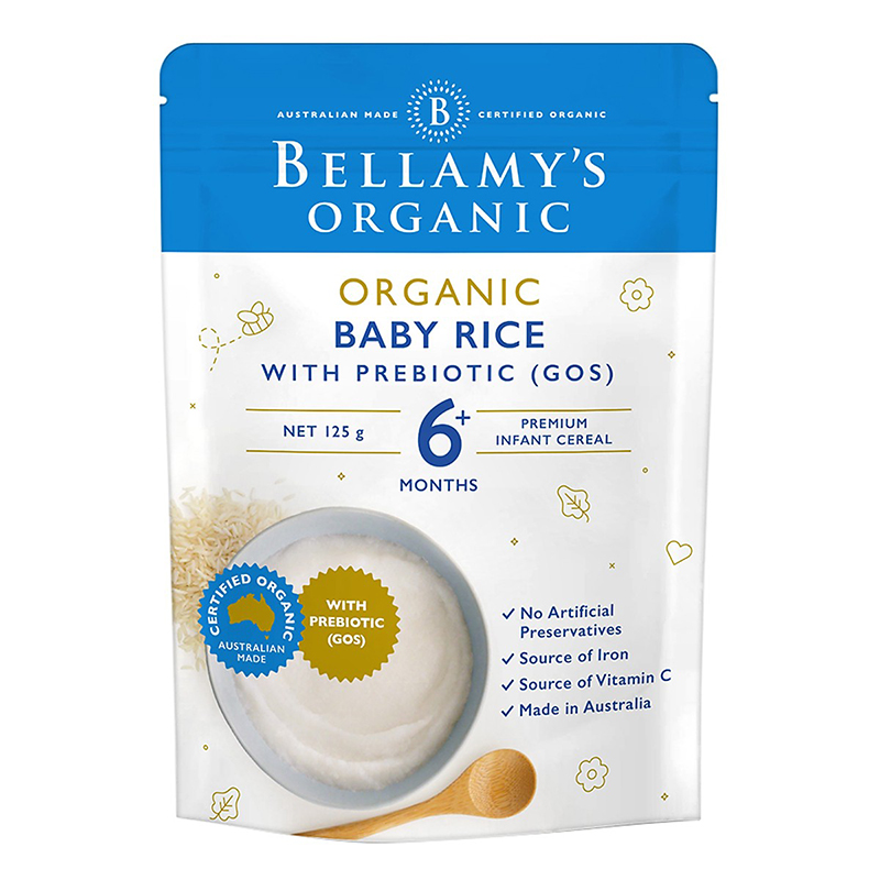 Bột dinh dưỡng hữu cơ Bellamy's Organic Gạo và Prebiotic 125g (6M+) làm từ gạo nay có thêm Prebiotic (GOS), là nguồn dinh dưỡng giàu vitamin C và khoáng sắt. Bột dinh dưỡng được chế biến đơn giản, chỉ cần pha với nước hoặc sữa công thức của bé. Có thể kết hợp với trái cây và rau củ xay nhuyễn để tạo ra nhiều bữa ăn khác nhau cho bé thưởng thức.