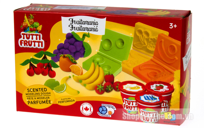 Bạn đang tìm một loại đất nặn an toàn cho bé, để bé có thể thỏa sức sáng tạo... Nhưng bạn lo lắng khi bé chơi với những sản phẩm có mùi không an toàn, ảnh hưởng đến sức khỏe của bé. shop trẻ thơ giới thiệu với bạn bột nặn an toàn trái cây tươi mát Tutti Frutti. Tutti Fruitti là bột nặn hương thơm cao cấp, được sản xuất tại Canada, đã qua kiểm định chất lượng Châu Âu nên đạt độ an toàn tuyệt đối, màu sắc sinh động, tươi sáng và hương thơm như thật. Bộ có ba mùi chanh, cherry trắng, vàng đỏ, hương vani. Mỗi bộ sản phẩm Tutti Fruitti là những chủ đề khác nhau, với những mùi hương và màu sắc phù hợp. Các phụ kiện hỗ trợ giúp bé dễ dàng tạo nên những khối hình đẹp mắt như thật.