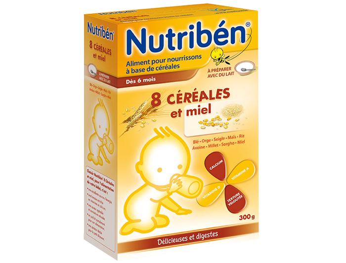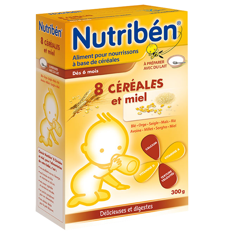 Bột pha sữa Nutribén - 8 loại ngũ cốc và mật ong (6M+) với các loại nguyên liệu chất lượng cao và một phương pháp chế biến ngũ cốc đặc biệt đã trở thành một loại thức ăn cân bằng, dinh dưỡng cao, dễ tiêu và dễ hấp thụ. Sản phẩm có thể dùng để pha với sữa, hoặc khuấy bột như bình thường cho bé từ 6 tháng trở lên.