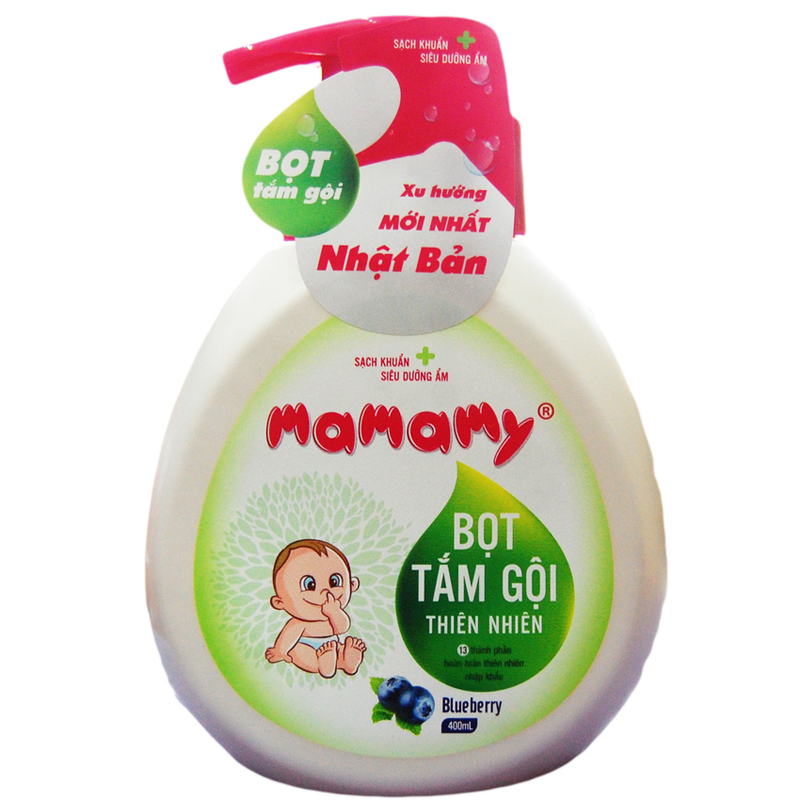 Bọt tắm gội thiên nhiên Mamamy Blueberry (400ml) được sản xuất trên dây chuyền đạt chuẩn GMP, ứng dụng xu hướng mới nhất của Nhật Bản với 13 thành phần hoàn toàn tự nhiên cho làn da bé sạch khuẩn và siêu dưỡng ẩm. Bọt tắm gội Mamamygiúp các bà mẹ tiết kiệm được thời gian trong công đoạn đánh bọt, việc tắm gội cho bé trở nên dễ dàng và nhẹ nhàng hơn.