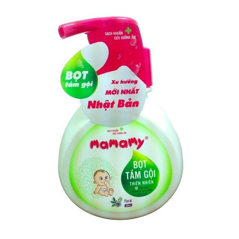 Bọt tắm gội là một trong những sản phẩm được các bà mẹ Nhật, Hàn ưa chuộng sử dụng cho bé yêu bởi đặc tính an toàn và tiện dụng. Với hương hoa tổng hợp thơm nhẹ, bọt tắm gội thiên nhiên Mamamy Floral (200ml) không chỉ giúp làm sạch toàn thân mà còn dưỡng ẩm cho làn da nhạy cảm của bé. Bọt tắm gội Mamamy được sản xuất từ các thành phần tự nhiên, dưới dạng dịch lỏng, khi sử dụng, nhờ vòi phun thiết kế đặc biệt đã tạo ra những đám bọt mịn màng và có thể sử dụng trực tiếp trên da.
