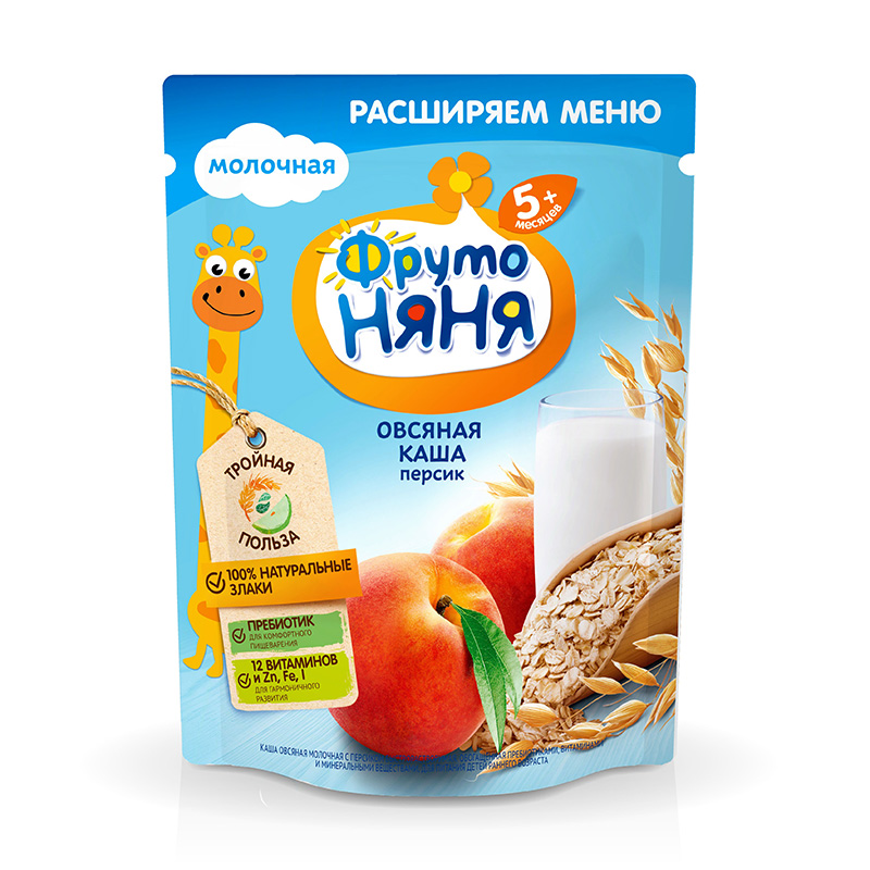 Bột yến mạch vị đào Fruto Nyanya được làm từ bột yến mạch, bột kem, đường, đào xay nhuyễn, sữa bột tách kem,... không chứa màu nhân tạo, chất tạo hương vị, chất bảo quản nên rất an toàn cho bé khi sử dụng. Sản phẩm bổ sung prebiotic-inulin, một số vitamin và khoáng chất thiết yếu phù hợp cho cơ thể bé phát triển đầy đủ và toàn diện.