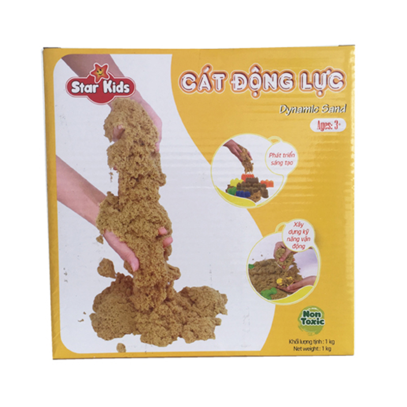 Cát động lực Star Kids K303 màu vàng với 98% cát bãi biển tự nhiên có thêm chất kết dính để bé có thể nặn hoặc mua khuôn nhựa bổ sung để tạo ra bất kỳ hình dạng mà bé có thể tưởng tượng. Theo chứng minh phương pháp giáo dục Montessori, cát tạo hình STAR KIDS giúp trẻ phát triển đồng đều của cả hai tay và tăng khả năng tư duy, sáng tạo, rèn luyện khả năng tập trung và giúp bé thực hành vận động thô và vận động tinh.