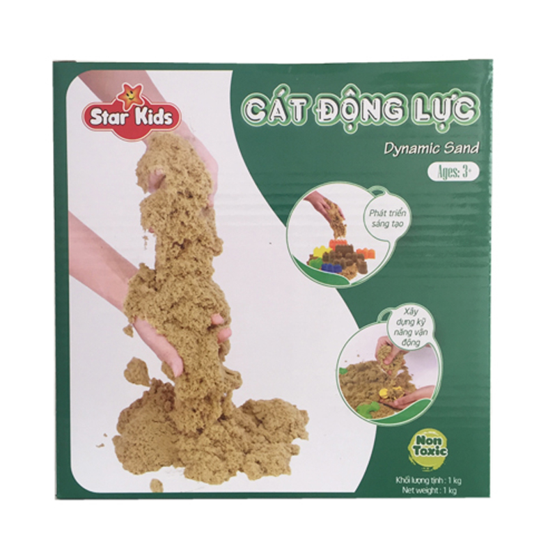 Cát động lực Star Kids K304 màu xanh lá cây với thành phần là cát bãi biển tự nhiên có thêm chất kết dính để bé có thể nặn hoặc mua khuôn nhựa bổ sung để tạo ra bất kỳ hình dạng mà bé có thể tưởng tượng. Theo chứng minh phương pháp giáo dục Montessori, cát tạo hình STAR KIDS giúp trẻ phát triển đồng đều của cả hai tay và tăng khả năng tư duy, sáng tạo, rèn luyện khả năng tập trung và giúp bé thực hành vận động thô và vận động tinh.