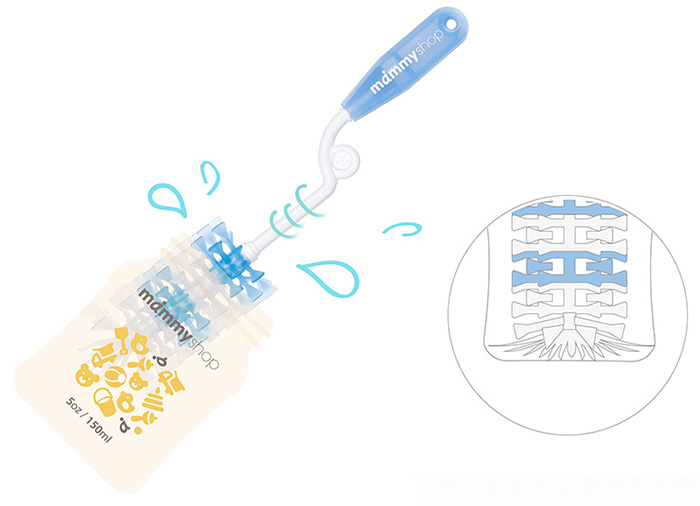 - Thiết kế tay cầm cũng như phần cán của cây cọ lớn dài, cong gấp khúc giúp mẹ dễ dàng làm sạch phần bên trong bình với thao tác xoay 360 độ đơn giản và nhanh chóng.