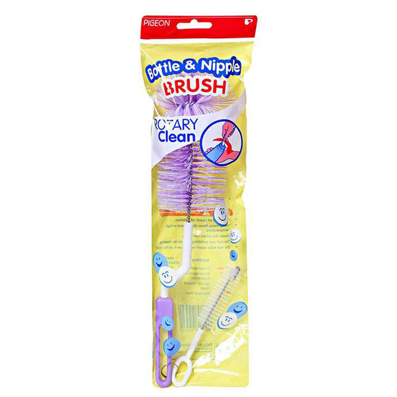 Cây cọ rửa bình sữa Pigeon (xoay 1 chiều) giúp làm sạch bình sữa, núm ty kể cả những góc cạnh khó tẩy rửa nhất. Đầu cọ là những sợi nylon mềm nối chặt với lõi thép, giúp bạn rửa tẩy sạch hết mảng bám nhưng không làm trầy xước bình. Đi kèm với cọ lớn rửa bình là cọ nhỏ rửa phụ kiện bình thiết kế nhỏ gọn, để làm sạch các váng sữa còn bám lại bên trong phụ kiện bình.