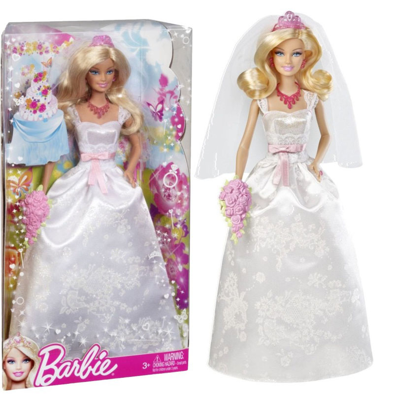 Hãy nói “Tôi đồng ý” với công chúa cô dâu xinh đẹp này! Búp bê Barbie nhìn khác lạ trong một chiếc váy màu trắng lung linh với điểm nhấn ribbon và ren lấp lánh đi kèm với một bó hoa hồng! Các bé gái có thể xây dựng giấc mơ về ngày cưới của mình với nàng búp bê cô dâu tuyệt đẹp này. Mang theo bó hoa hồng và phụ kiện quyến rũ, búp bê Barbie sẽ thu hút tất cả mọi người tại buổi lễ khi cô bước xuống lối đi.