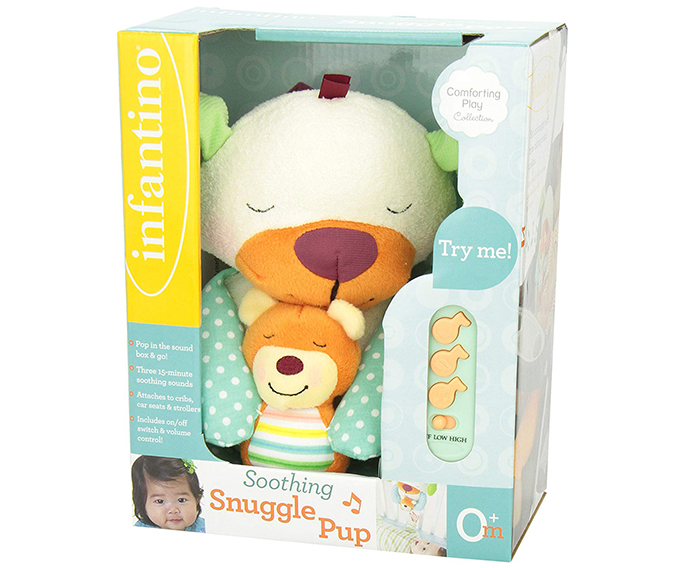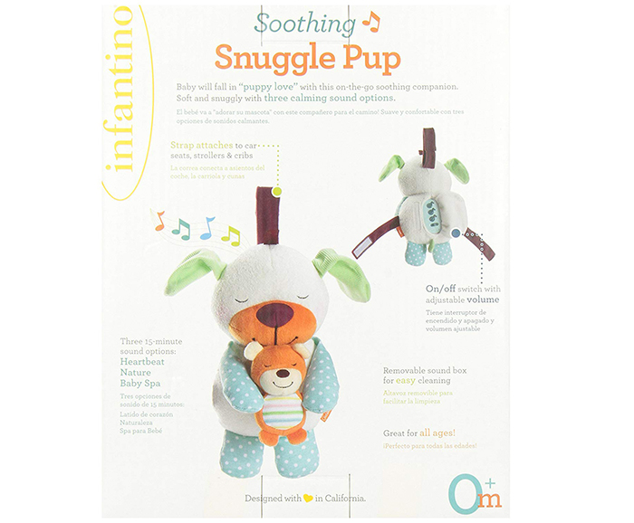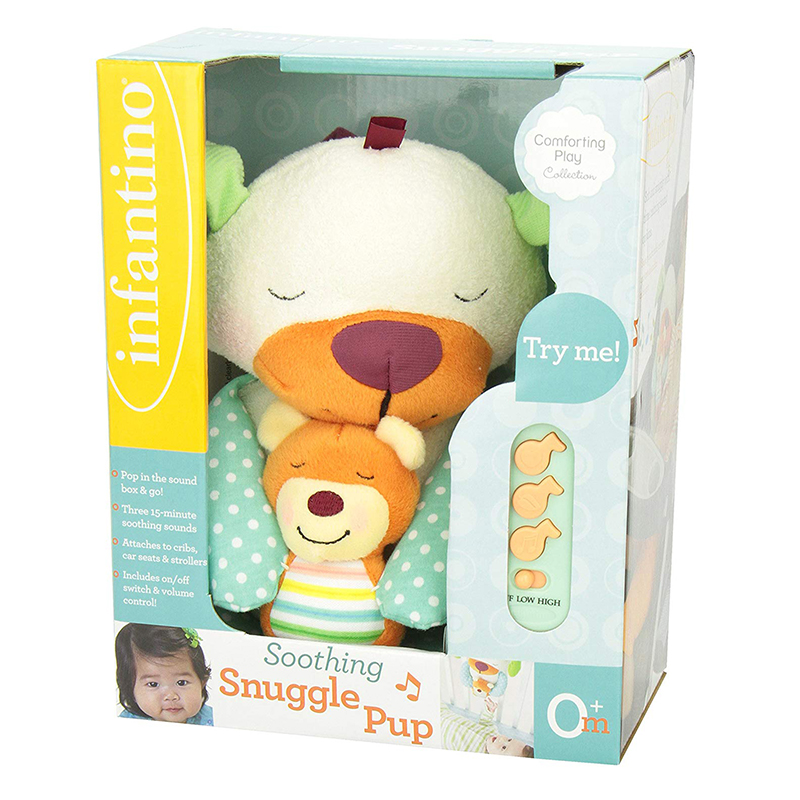 Cún bông ru ngủ Infantino 6323 (0m+) vừa là đồ chơi thú bông đồng thời có thể phát ra những giai điệu êm dịu, nhẹ nhàng để ru ngủ bé, rất tiện lợi cho mẹ. Thú bông có thể phát ra tiếng nhạc trong vòng 15 phút, đủ thời gian để đưa bé vào giấc ngủ, âm lượng có thể điều chỉnh to nhỏ tùy chọn.