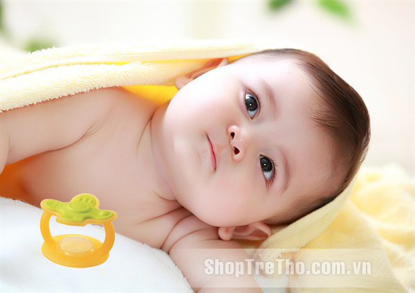 Có hình núm ti giúp bé ngậm và mút dễ dàng. Phần ti ngậm màu vàng được thiết kế để bé có thể ngậm miệng lại bình thường.