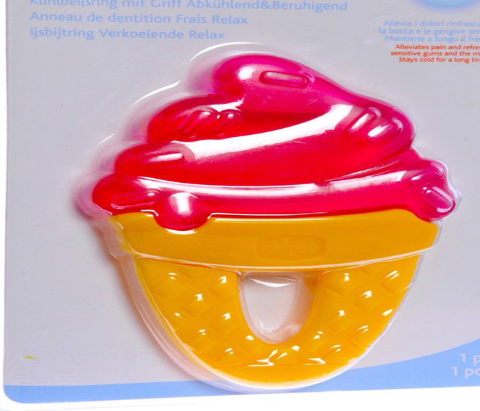 Ngâm cắn răng trong nước lạnh, phần gôm mềm sẽ hấp thu nhiệt và giữ mát khá lâu, giúp mát-xa phần nướu của bé.