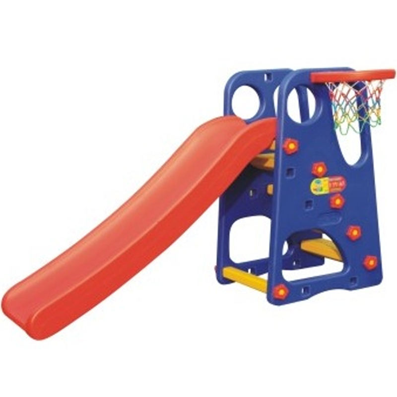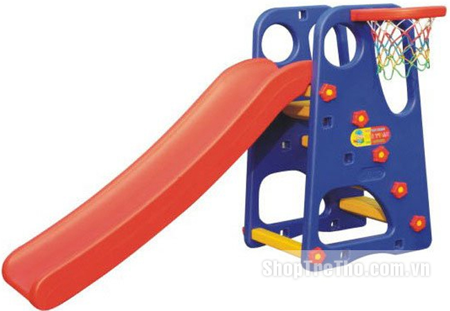 - Tích hợp 3 chức năng là cầu trượt, leo cầu thang và chơi bóng rổ, các trò chơi được sắp xếp liên hoàn, giúp bé thỏa sức sáng tạo thêm những trò chơi khác