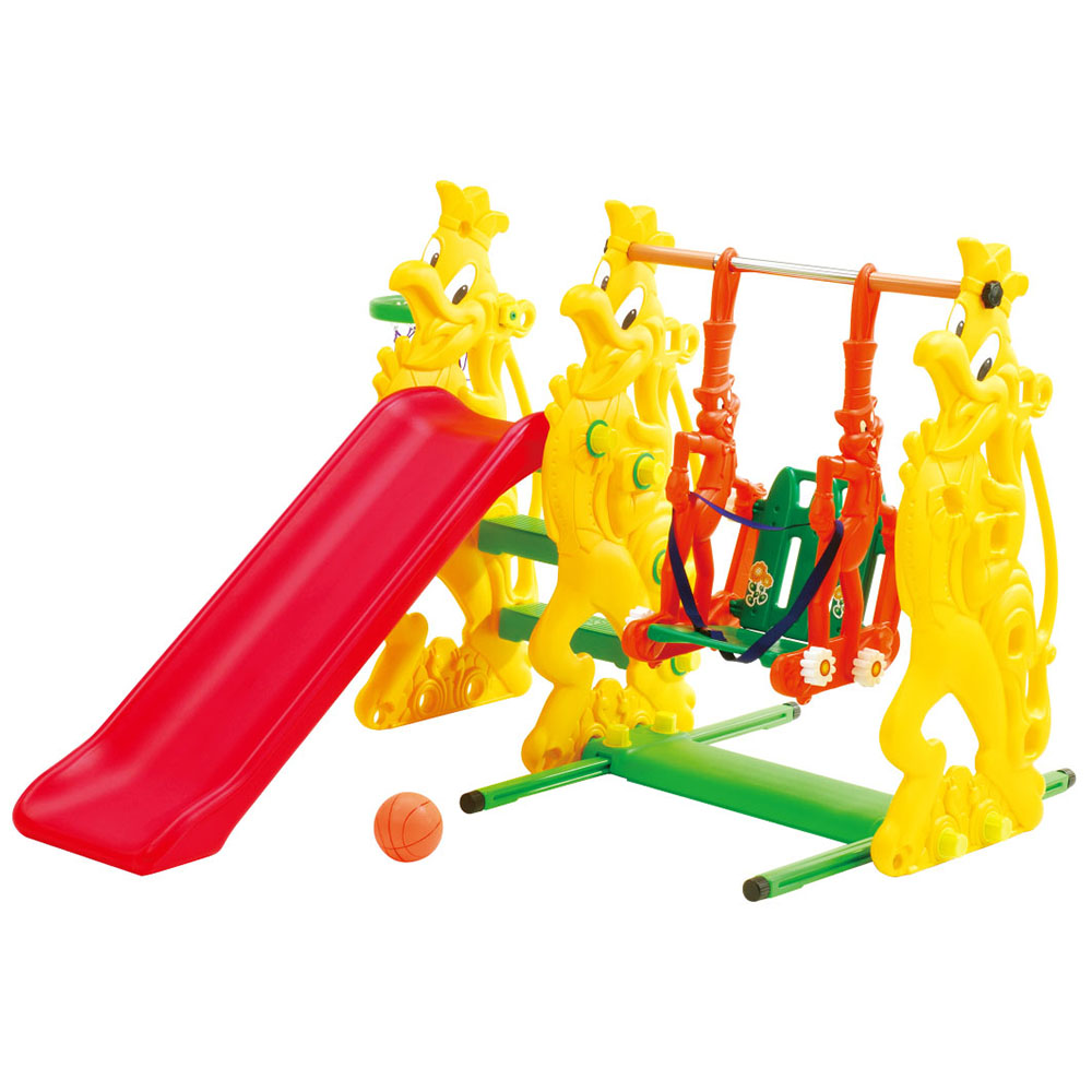 Cầu trượt hình con gà trống SL-15 giúp trẻ vui chơi sảng khoái, rèn luyện trí thông minh và sự sáng tạo của mình. Đồ chơi cầu trượt được kết hợp với nhiều mẫu đồ chơi khác như xích đu, đồ chơi bóng rổ là sự kết hợp hoàn hảo 3 trong 1 cho bé yêu rèn luyện cơ bắp và sự sáng tạo của mình khi chơi.
