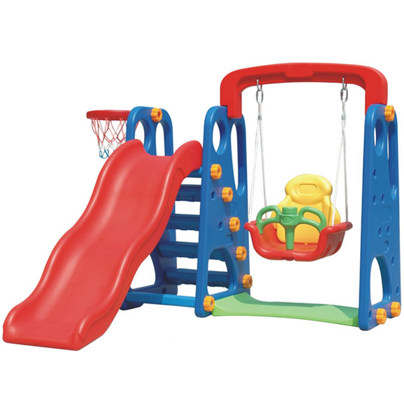 - Đồ chơi dành cho trẻ có bóng rổ, cầu trượt và xích đu an toàn