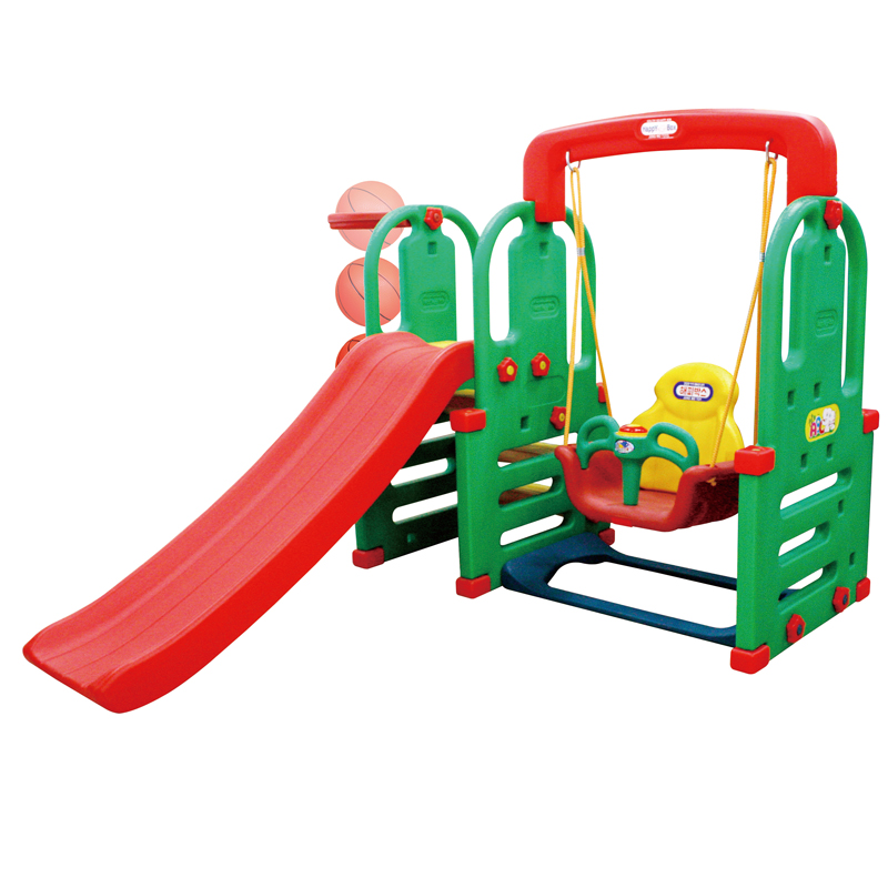 - Bộ sản phẩm với thiết kế đa năng để các bé có thể chơi cùng lúc nhiều trò chơi như: ném bóng rổ, xích đu, máng trượt, leo cầu thang. Đặc biệt ghế ngồi xích đu có nốt bấm để tạo nên tiếng nhạc vui nhộn