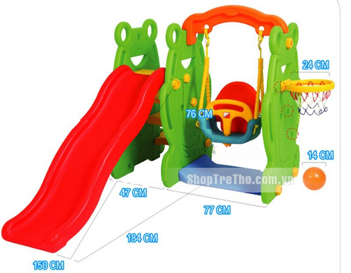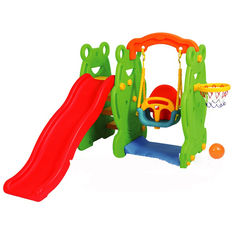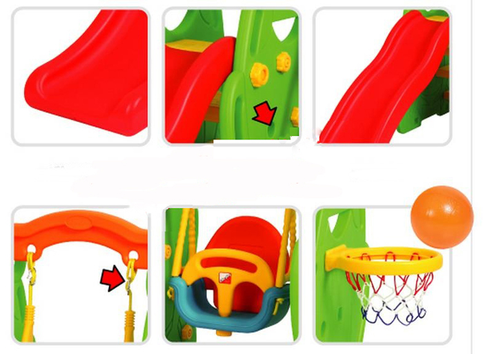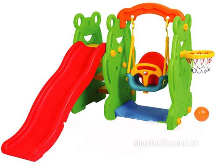 - Kết hợp 3 trò chơi trong một bộ đồ chơi: với bộ đồ chơi này bé có thể thoải mái chơi cầu trượt, xích đu hoặc chơi trò bóng rổ.