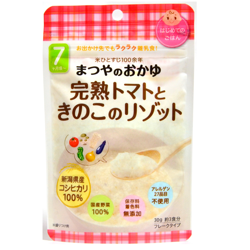 Cháo ăn dặm gạo Koshihikari, cà chua, nấm Matsuya (7m+) là sản phẩm cao cấp của Nhật, không sử dụng chất bảo quản, dành cho các bé từ 7 tháng trở lên. Cháo được nấu từ các nguyên liệu sạch, cung cấp đầy đủ chất đạm, chất béo, chất bột đường và bổ sung năng lượng cần thiết cho nhu cầu phát triển của trẻ khi bước vào thời kì ăn dặm.