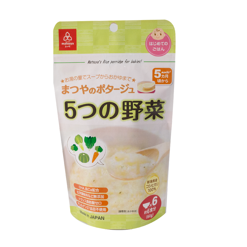 Cháo gạo Koshihikari 5 loại rau Matsuya 60g (5M+) với hương vị thơm ngon, kích thích bé ăn uống, giúp cung cấp canxi, chất dinh dưỡng, năng lượng, vitamin cho trẻ khi bắt đầu ăn dặm. Sản phẩm được chế biến từ các nguyên liệu cao cấp, dạng cốm, dễ hòa tan trong nước, giúp trẻ dễ nhai nuốt, tiêu hóa tốt.