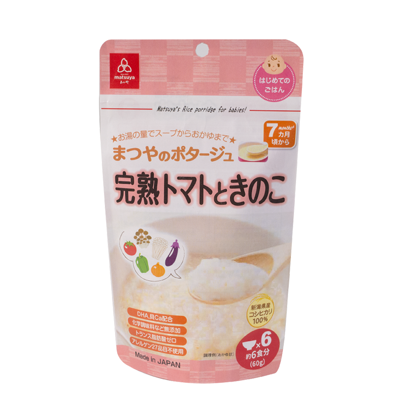 Cháo gạo Koshihikari cà chua và nấm Matsuya 60g (7M+) với mùi vị thơm ngon từ gạo tẻ Nhật Bản, cà chua, nấm cùng với các nguyên liệu bổ dưỡng khác như nấm kim châm, hành tây, ớt chuông,..mang đến bữa ăn dưỡng chất cho bé. Đặc biệt, sản phẩm được đóng gói túi to hơn, bé dùng được lâu hơn, tiết kiệm cho mẹ.