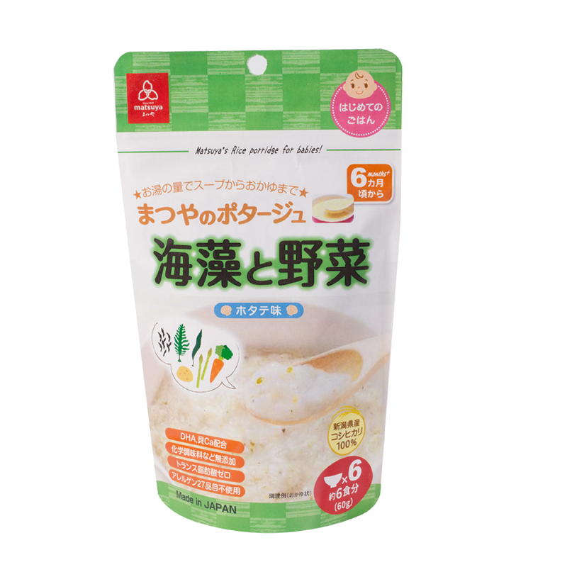 Cháo gạo Koshihikari vị sò điệp với rau và rong biển Matsuya 60g (6M+) chế biến từ gạo tẻ Koshihikari tỉnh Niigata Nhật Bản, đây là nơi được xem như vựa lúa của Nhật bởi có đất đai màu mỡ, chính vì thế, gạo vùng này thơm dẻo, ngập tràn dinh dưỡng, thường được lấy làm bột ăn dặm, cháo ăn dặm cho trẻ nhỏ.