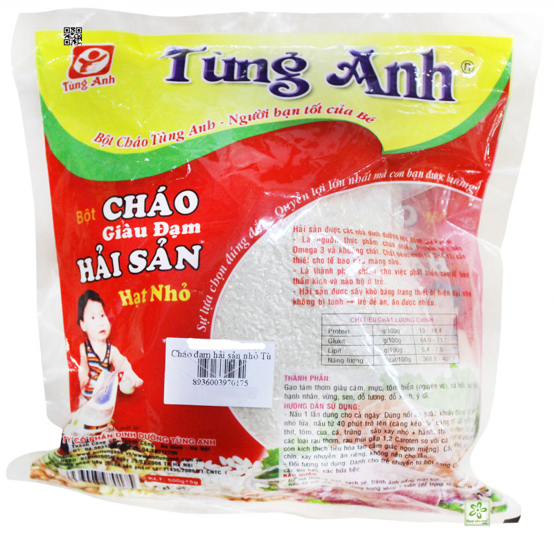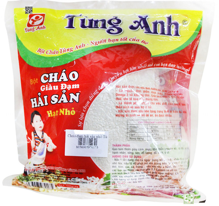 Cháo hải sản Tùng Anh được các nhà dinh dưỡng học đánh giá rất cao. Là nguồn thực phẩm chứa nhiều Protein, axit béo Omega 3 và khoáng chất. Chất béo, nhất là DHA rất cần thiết cho tế bào của màng não, là thành phần chính cho việc phát triển các tế bào thần kinh và não bộ ở trẻ. Hải sản được sấy khô bằng trang thiết bị hiện đại nên không bị tanh giúp trẻ dễ ăn, ăn được nhiều.