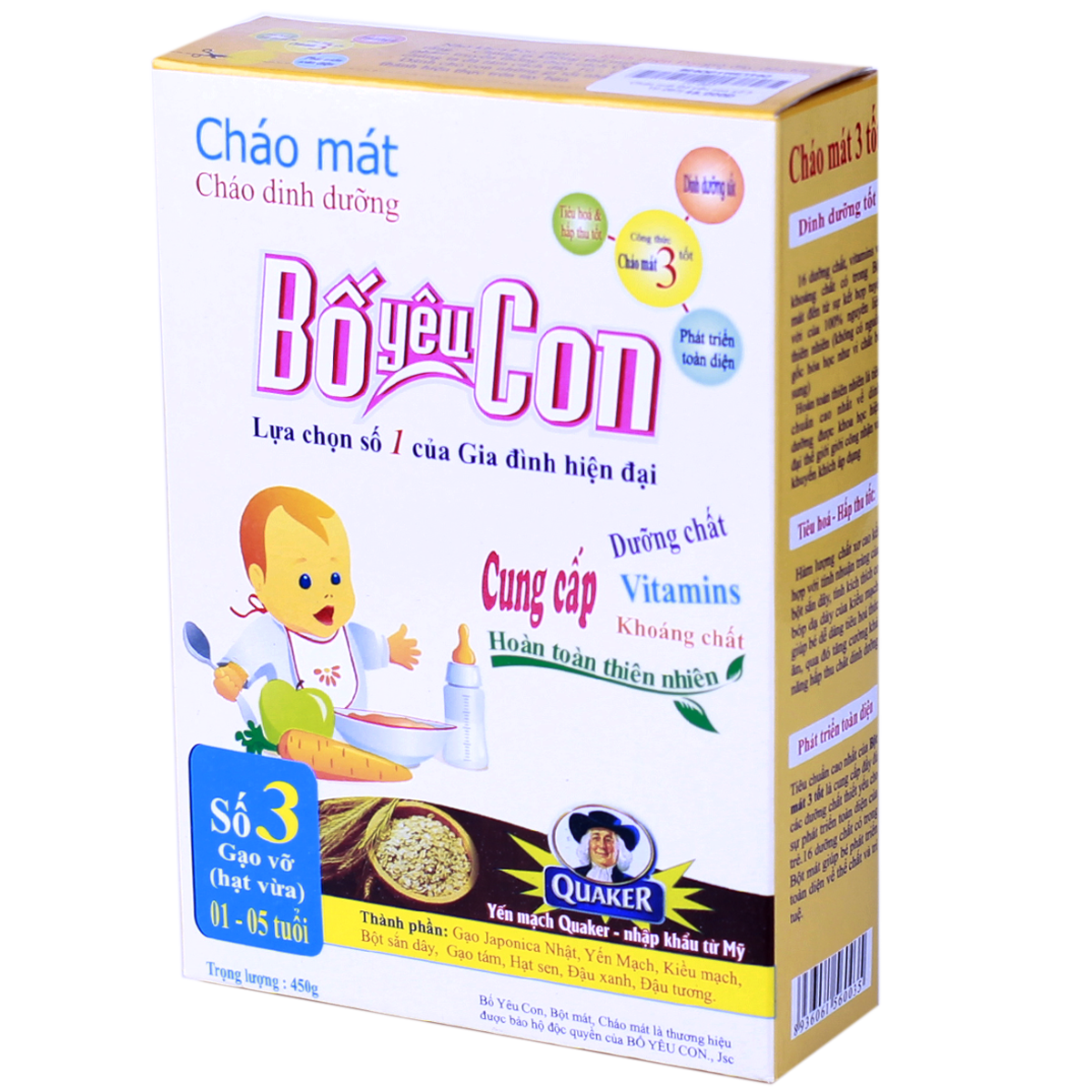 Công thức Cháo mát 3 tốt được nghiên cứu và phát triển bởi nhóm chuyên gia của Công ty cp Bố Yêu Con chủ trì bởi kỹ sư Nguyễn Quỳnh Trang (từ ĐH Bách Khoa HN), giúp bé phát triển toàn diện về thể chất và trí tuệ nhờ khả năng cung cấp đến 16 loại dưỡng chất, vitamins và khoáng chất quan trọng cho sự phát triển của Bé.