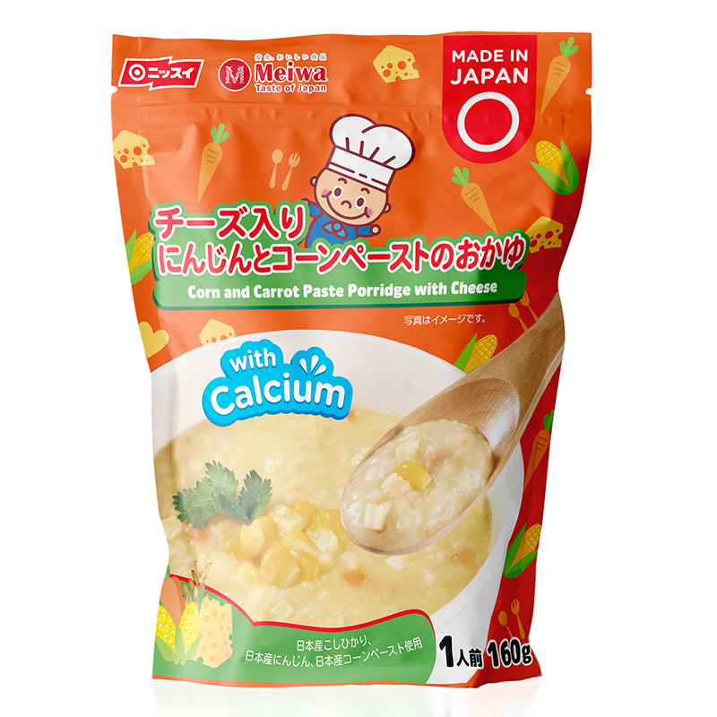 Cháo tươi Meiwa vị bắp, cà rốt, phô mai 160g (6M+) với nguyên liệu chính là gạo đặc sản Koshihikari và các loại rau giàu dinh dưỡng: bắp, cà rốt, phô mai mang đến cho bé bữa ăn ngon hơn với đầy đủ các dưỡng chất. Ngoài ra sản phẩm này có chứa thành phần làm từ sữa, được bao gói trong túi Retort (Polyester, Nhôm, Nylon, Polypropylene). Cam kết bao bì sử dụng đảm bảo an toàn vệ sinh thực phẩm theo quy định của Bộ Y Tế, thích hợp với bé 6 tháng tuổi trở lên.