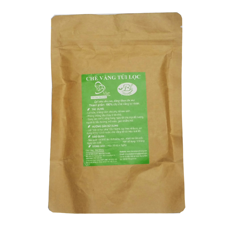 Chè vằng túi lọc Bảo Khang được chiết xuất 100% thành phần từ thân cây và lá cây vằng tự nhiên, được đóng dạng túi lọc, dễ sử dụng. Sản phẩm đặc biệt tốt cho phụ nữ sau sinh giúp lợi sữa, kháng viêm, săn chắc vòng bụng, giảm cân hoàn toàn tự nhiên một cách nhanh chóng.