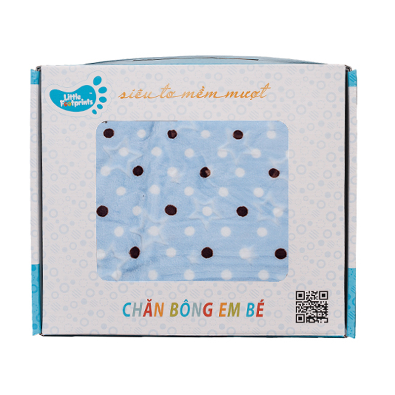 Mền bông 1 lớp Little Foot Prints với họa tiết xanh chấm bi
