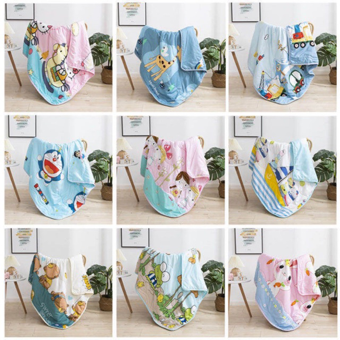 Chăn đũi hè in nhiều hình (110*150cm) với kích thước phù hợp với trẻ nhỏ, không làm bé khó chịu khi đắp ngủ. Chăn được may từ chất vải đũi cotton nhẹ, mềm và xốp, phù hợp cho thời tiết mùa hè hoặc khi nằm ngủ điều hòa, tránh việc bé bị cảm lạnh.
