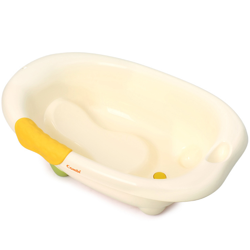 Thiết kế chậu tắm Combi thuôn vừa với hình dạng cơ thể bé, đáy chậu gồ lên rất hiệu quả trong việc đỡ lưng của bé mà không cần dùng tới lưới tắm.