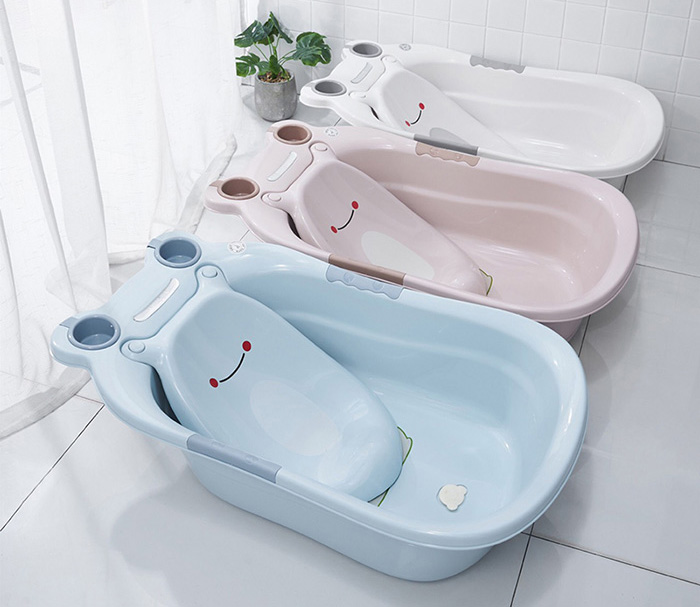 - Thiết kế hai tay cầm chống trượt ở hai bên thành chậu, bé có thể ngồi bám vào để mẹ kỳ cọ.
