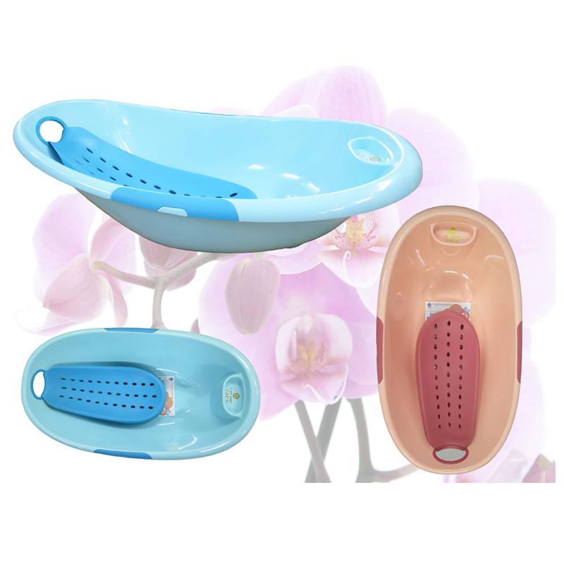 Thiết kế mặt đáy thau chống trơn trượt, đảm bảo an toàn cho bé khi tắm rửa.