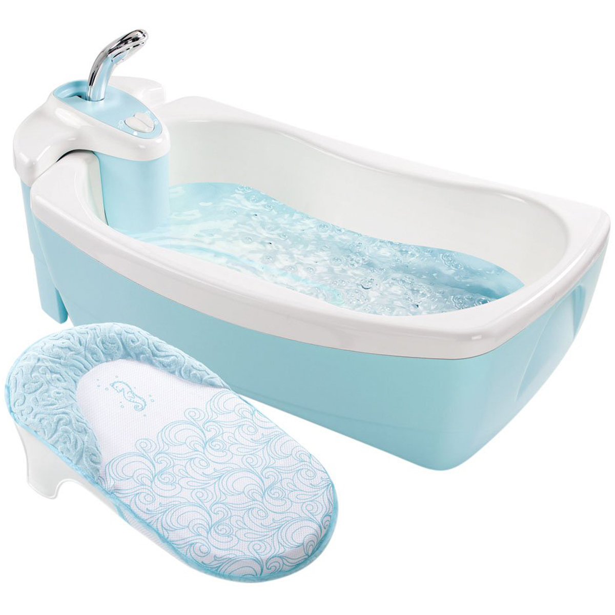 chậu tắm Spa màu xanh có vòi sen Summer 18863 sẽ mang lại cho mẹ và bé những trải nghiệm thú vị. Chậu thật sang trọng và tiện dụng với các trang thiết bị hiện đại. Hệ thống tạo bong bóng và xoáy nước giúp mát-xa bé một cách nhẹ nhàng. Ghế nằm tắm cho bé gối đầu thật thoải mái. Đặc biệt, Chậu tắm Spa màu xanh có vòi hoa sen Summer 18863 còn có tính năng giữ ổn định nhiệt độ nước để bé tắm thỏa thích mà không sợ lạnh.