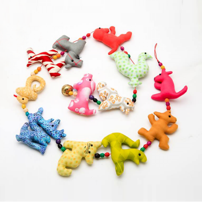 - Sản phẩm gồm 12 con giáp, được nối với nhau có gắn chuông để bạn treo ở cửa sổ, trong phòng, hoặc trước nôi, cũi của bé