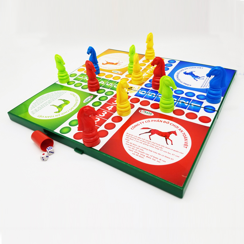 - Số chi tiết: 25 gồm 1 bàn cờ (hộp đựng), 20 quân cá ngựa, 4 xúc xắc