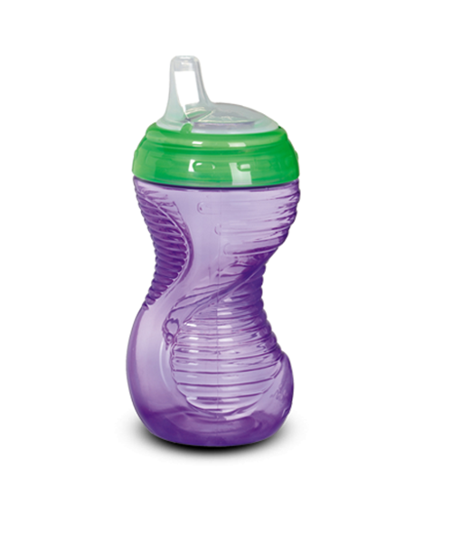 Tell your kids to get a grip when they sip. This fun-to-grip contoured cup makes it easy for little hands to hold and to sip a favorite drink. Tipping won't spill this leak-proof cup with its built-in valve. The valve is made of soft silicone so it's very comfortable. This is one unique cup with a mighty big advantage. Holds 10 oz. of liquid. Top rack dishwasher safe. Perfect for kids 12+ months.