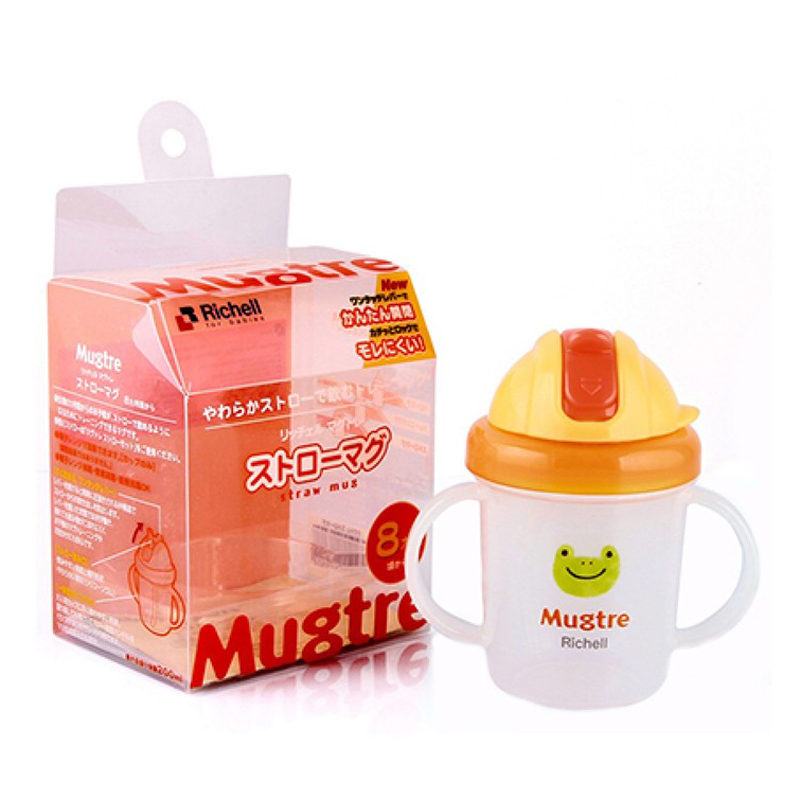 Cốc tập uống có ống hút Mugtre Richell RC41640 với gam màu vàng dành cho bé từ 8 tháng tuổi để tập cho bé học cách tập uống bằng ống hút. Ống hút được làm bằng chất liệu silicone mềm và dai, kích thích môi và lợi của bé. Ống hút nằm trong nắp đậy dễ đóng mở, giữ vệ sinh. Tay cầm hai bên hông vừa vặn với tay bé, giúp bé có thể tự cầm một cách dễ dàng mà không cần sự trợ giúp.