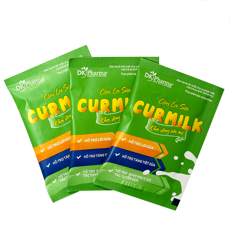 Cốm lợi sữa Curmilk (10 gói/hộp) với thành phần chiết xuất tự nhiên, giúp sữa nhanh về, sữa giàu dinh dưỡng và duy trì được lượng sữa ổn định trong suốt quá trình cho con bú. Sản phẩm dùng cho mẹ sau sinh, mẹ bị ít sữa, sữa loãng...