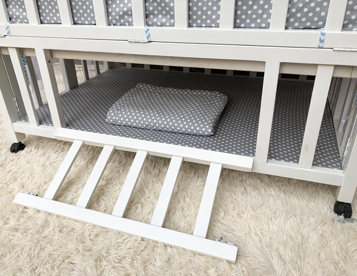 - Thiết kế thông minh với đa chức năng: làm giường để áp sát giường bố mẹ và làm cũi cho bé có một không gian chơi an toàn, có ngăn chứa đồ tiện lợi cho cả mẹ và bé