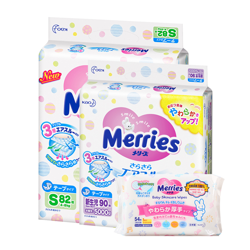 - 01 bịch tã - bỉm dán Merries size S - 82 miếng cho bé 4 - 8kg