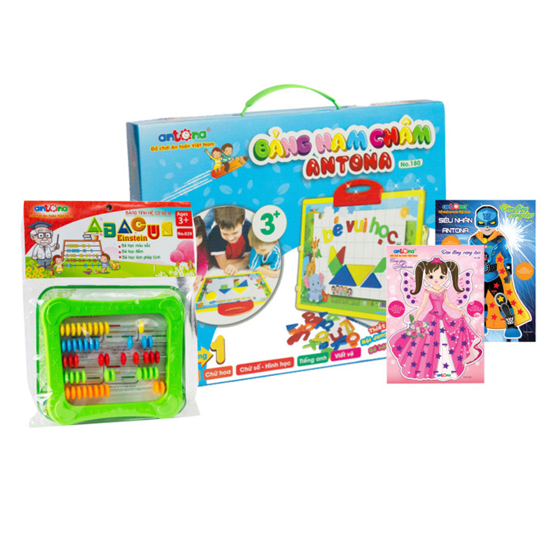 Combo đồ chơi Antona - Bé học tài năng là đồ chơi giáo dục giúp trẻ học chữ, học vần, làm quen với mặt chữ trước khi bước vào lớp 1. Hơn nữa, bộ sản phẩm có kèm 1 lồng đèn trung thu (công chúa hoặc siêu nhân) thích hợp làm quà tặng dành cho bé khi Trung Thu sắp tới.