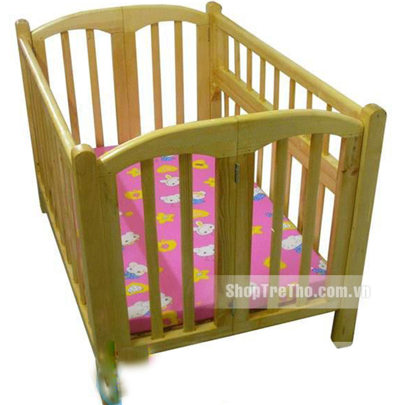 Cũi thông trẻ em 2 trong 1 (Lào) làm bằng chất liệu gỗ thông Lào đã qua tẩm sấy chống mọt, chống ngót gỗ.