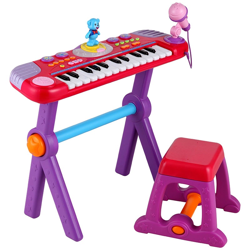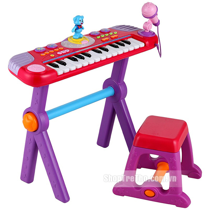 - Đặc biệt, sản phẩm còn được bổ sung thêm một chiếc ghế cho bé ngồi khi chơi đàn và một micro để bé trổ tài giọng hát của mình.
