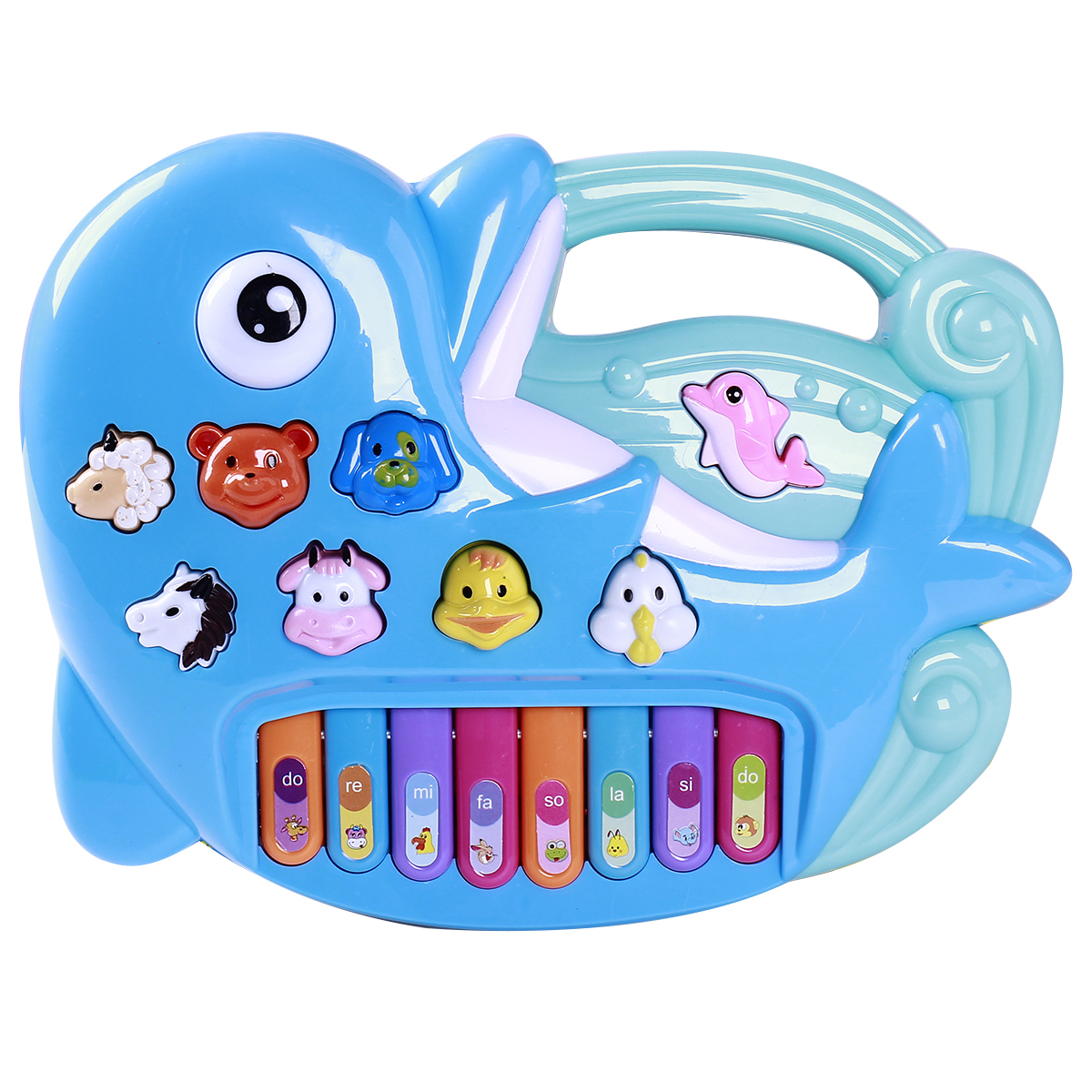 Đồ chơi đàn hình cá heo có nhiều tiếng kêu, âm thanh vui nhộn tạo cho bé cảm giác thích thú khi chơi sản phẩm đàn có nhạc hình cá heo. Đồ chơi có nhạc đàn hình cá heo có nhiều âm thanh và bản nhạc từ đồ, rê, mi, pha.. bé có thể học hỏi những cung nhạc ngay từ nhỏ với đồ chơi có nhạc đàn hình cá heo.
