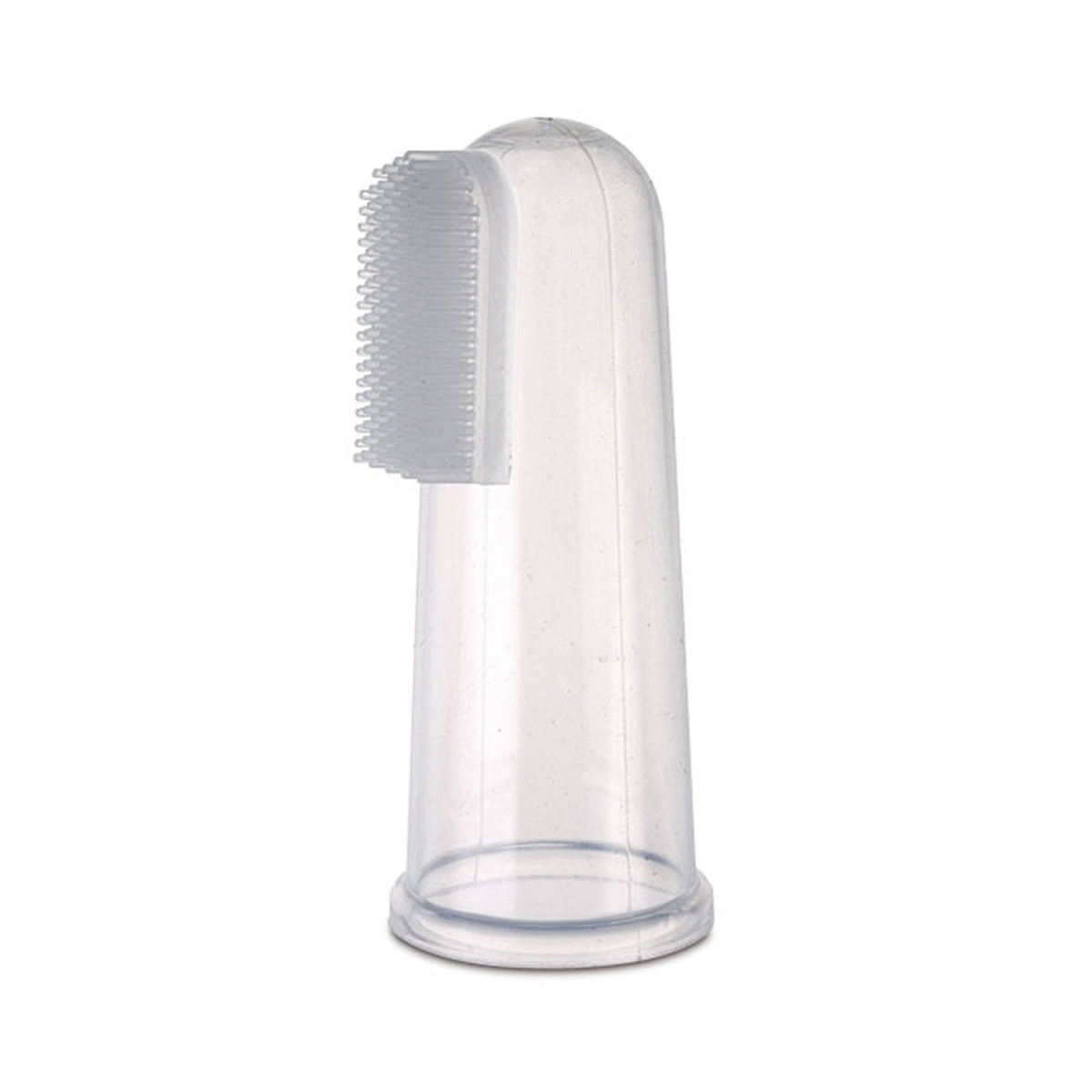 - Chỉ cần đưa đầu ngón tay vào chỗ trống trong bàn chải và bắt đầu chải răng hoặc matxa nướu cho bé.
