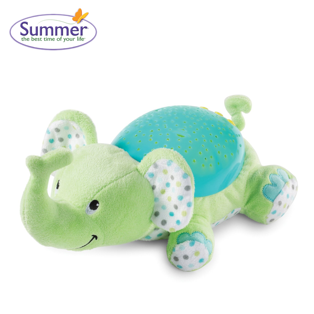 Đèn chiếu ru ngủ hình chú voi con phát ra ánh sáng với nhiều ngôi sao lấp lánh