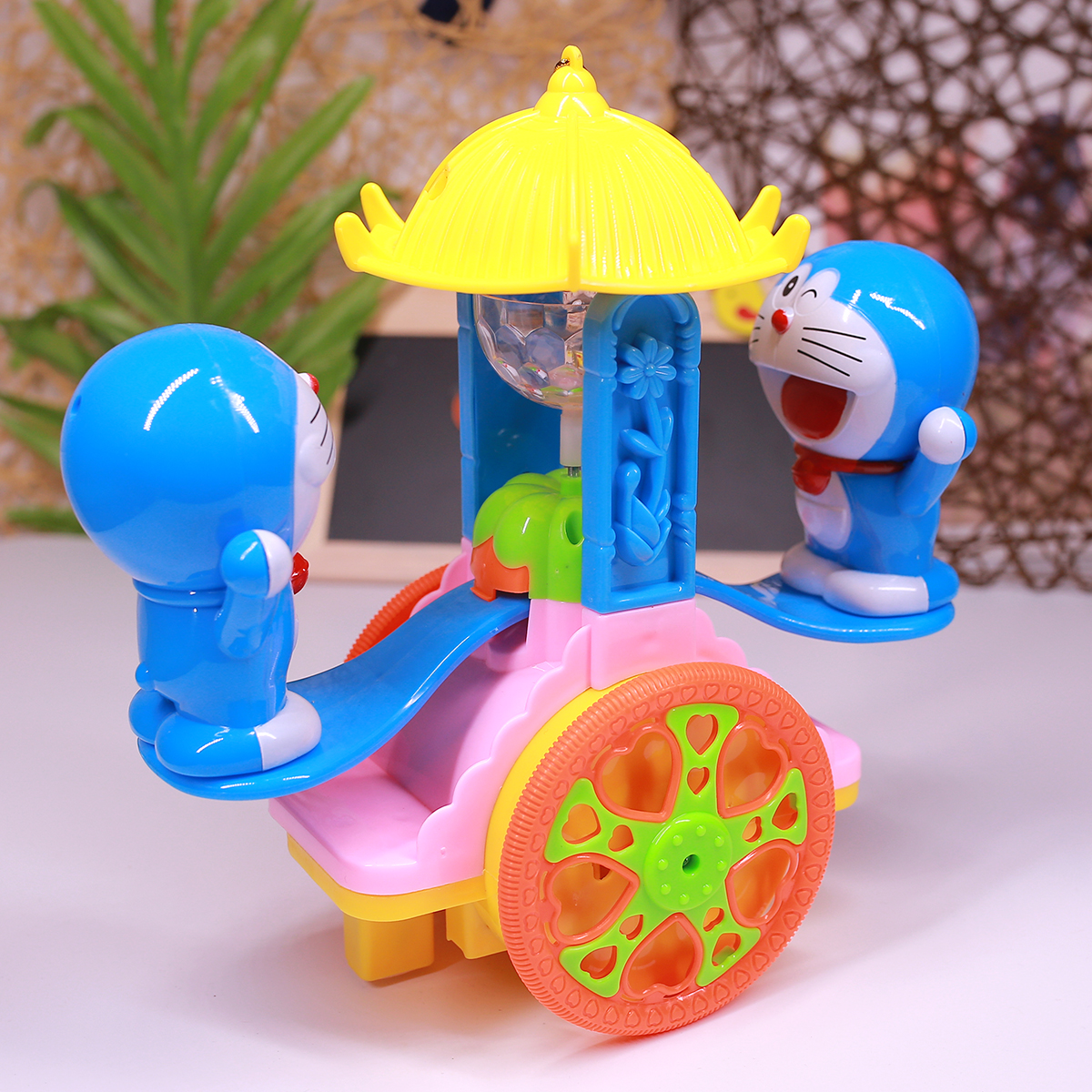 - Bên cạnh việc di chuyển, khả năng phát đèn sáng lấp lánh và chuyển động lên xuống của chiếc bập bênh với 2 bên là hai mô hình mèo máy Doraemon ngộ nghĩnh sẽ là điểm nhấn kích thích vận động để bé vui chơi hứng thú hơn.