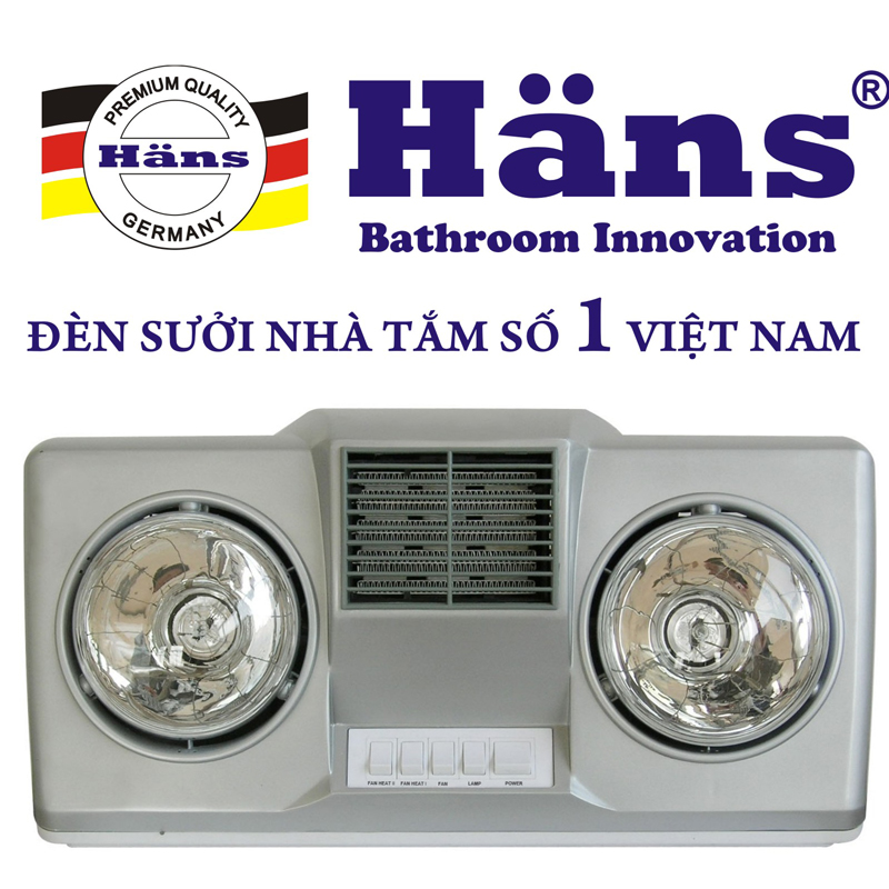 Đèn sưởi Hans 2 bóng thổi gió nóng H2B-HW với chức năng 4 trong 1: thắp sáng, sưởi ấm, thổi gió mát và thổi gió ấm cho phòng tắm. Tính năng sưởi ấm tức thì bằng tia hồng ngoại ngay sau khi bật nên sẽ không tốn nhiều thời gian cho việc phải chờ đợi làm ấm phòng tắm trước khi bạn vào phòng tắm và không tạo ra cảm giác khô da cho bạn, không đốt cháy oxy, giảm các triệu chứng đau, sưng, phù nề, bầm,tím, khớp, gout, chứng căng thẳng, mệt mỏi…, ngoài ra, còn tăng cường trao đổi chất, kích thích sinh trưởng tế bào, kích thích tuần hoàn máu.