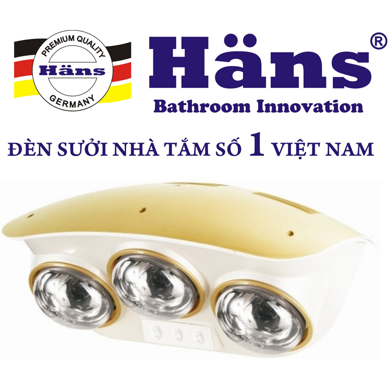 Đèn sưởi nhà tắm Hans 3 bóng dành cho nhà tắm có diện tích từ 4 đến 6m2